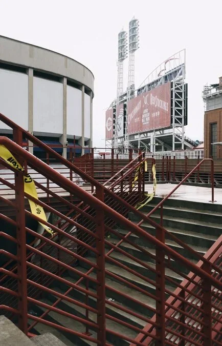 I was wrapping up photographs of the Showboat Majestic nearby, trying to get a clear shot of the boat from above. As I finished the day's assignment, I found myself walking around where the arena's plaza meets the bridge, making photographs of the ‘venue formerly known as the Riverfront Coliseum.’