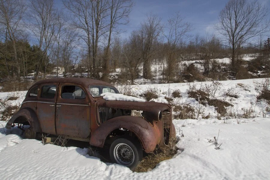 We planned to stop multiple times along the way, keeping an eye out for anything interesting we came across. We started at our Waffle House in Kings Mills, Ohio, and purposefully avoided the interstate system, taking back roads and “blue highways” only (although without the emotional conviction of William Least Heat-Moon). There was an abandoned bridge in Morrow, a junk yard in Blanchester, the Paint Creek Dam in Bainbridge, derelict vintage cars in Jackson, a bathroom break at a McDonalds (that did not sell pizza) in Chilicothe, and the Mothman Statue in Point Pleasant: