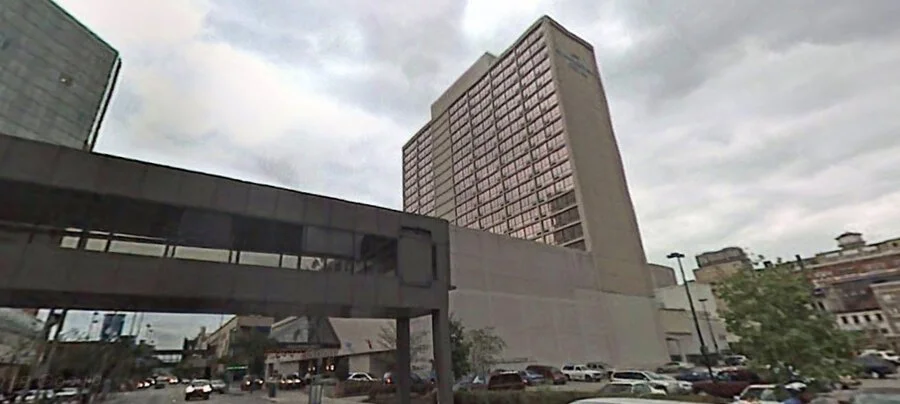 The Millennium Hotel seen above eventually closed in 2019. The massive convention-style hotel was mired with a questionable reputation in its later years. The current plans call for the structure to be demolished and replaced with a new hotel. Historically, the Millennium was once known as Stouffer’s Cincinnati Inn and then expanded with a second tower to become Stouffer’s Cincinnati Towers. During its prime, the 32nd floor featured a revolving restaurant. The same company that’s today known for its frozen foods, Stouffer’s once also included restaurants and lodging establishments in its portfolio. In a map seen at the end of this post, this corner is declared to feature both the Millennium and a Sheraton Four Points. I’m not sure where the Sheraton branded hotel would’ve been, if it was demolished, or if the Millennium eventually took it over/expanded. Matt Hunter Ross of Cincinnati Revisted has an excellent post about the history of the Stouffer’s hotel and this section of Downtown in general (replete with some great vintage photographs). This section of the city’s core has an interesting history, one heavily altered by mid-20th century construction and design ideals. The convention center opened in 1968 at a time when Skywalks and urban renewal were all the rage. Both the original Stouffer’s hotel and the expansion arrived to meet demand created by the convention center.