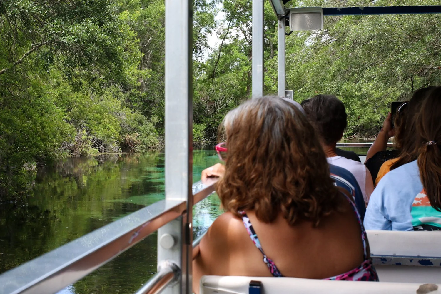 Visitors enjoying the Weeki Wachee River, a natural landmark fed by the springs below.