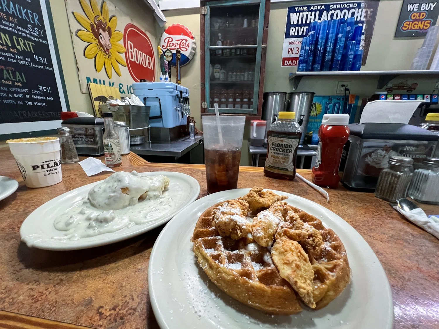 Back on the road, we drove into “Florida’s Tastiest Quarter Mile.” We’d actually started the day here with chicken and waffles, biscuits and gravy, and bourbon mimosas at a spot called The Florida Cracker. Now, we were back in the area for our next meal.