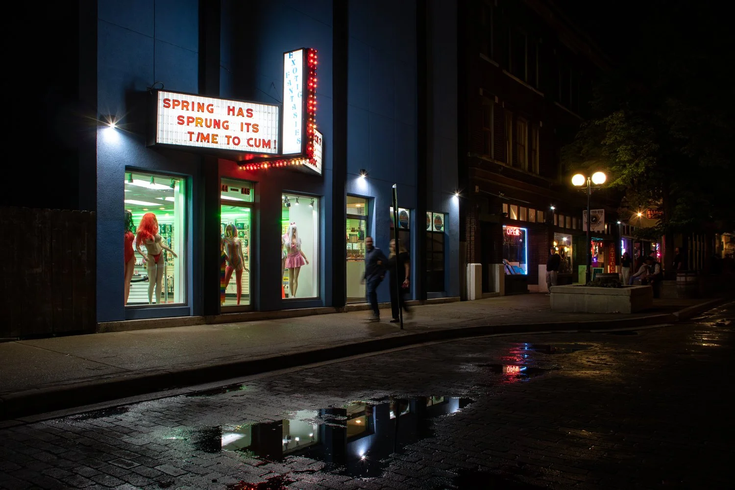 As Lammi, “Eazy-E,” and I meandered down the cobblestone streets, this was going to be close. The rain was holding off for the moment and crowds were light, but time was most definitely not on our side. Just as I set up the tripod, the bright lights of Exotic Fantasies went dark.