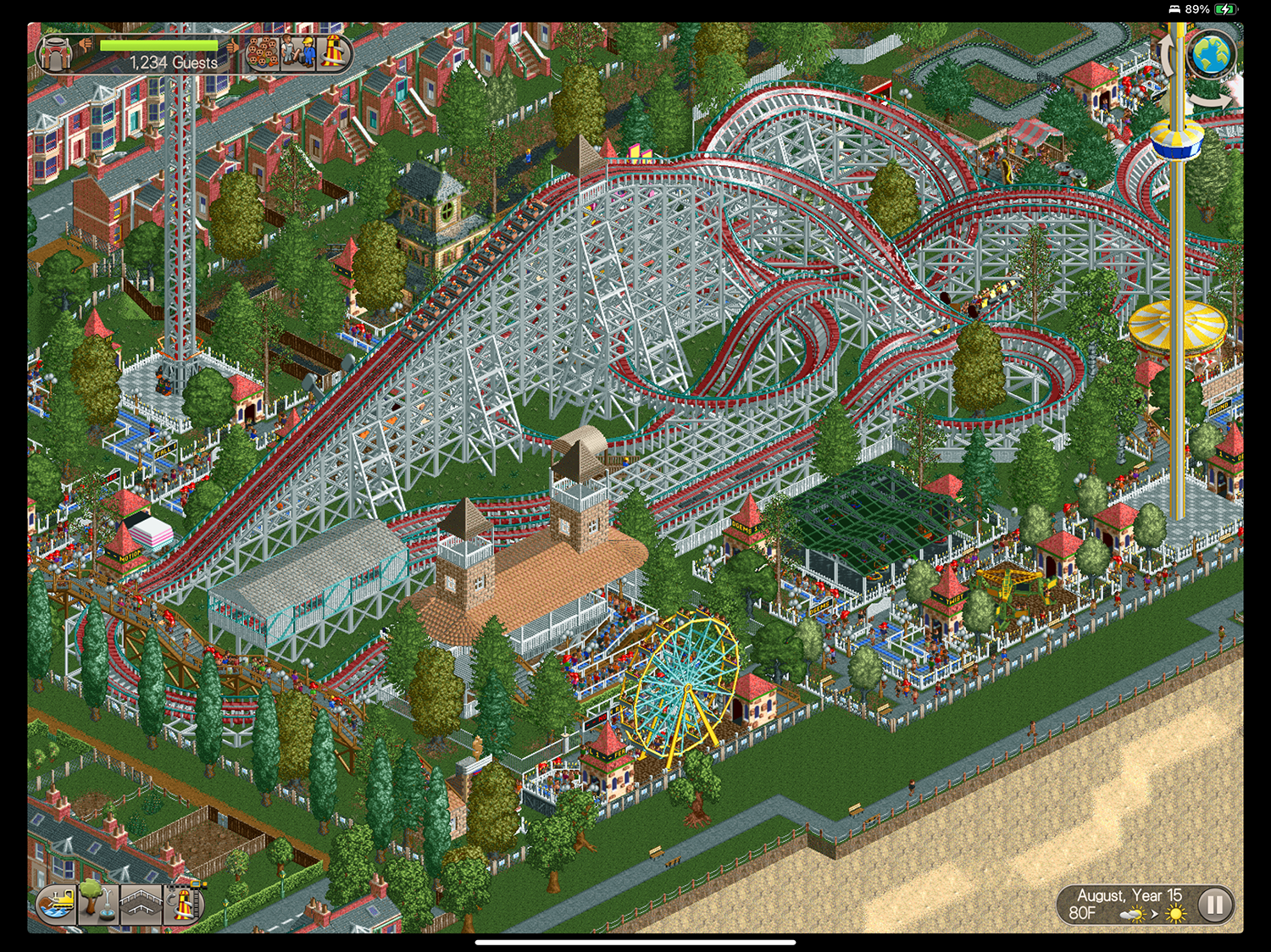 I’ve been playing RCT since my tenth birthday when I immediately became obsessed with the game’s subject matter, strategy, and mechanics. I got away from it for a while because I started using Apple devices (back when the game was still Windows exclusive), but in 2013—after a lot of trial and error—I was able to get the original game tepidly running on a Mac. A few years later in 2016, I no longer had to worry about my fragile, bootleg arrangement because the game was released on iPad (and later: officially for Mac).