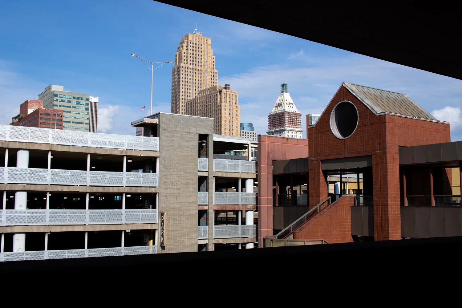 Surrounded by a windowless office tower, parking garages, and what has historically been a service entrance for the convention center—this block near the interstate exists solely as an area of function and convenience. A space that should seemingly lack any character because it’s simply there to move people, equipment, and vehicles along. It does boast a particularly interesting feature, however: one of the few remaining segments of the “Skywalk.”