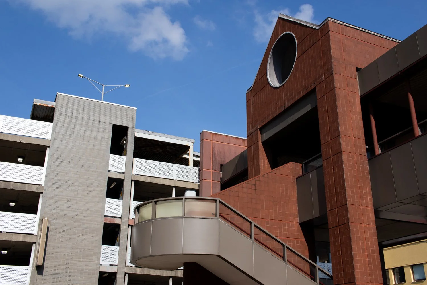 The decorative stairway connecting the Sixth & Plum Skywalk with the ground does appear a bit dated, but I find that it’s a unique example of a very specific style.