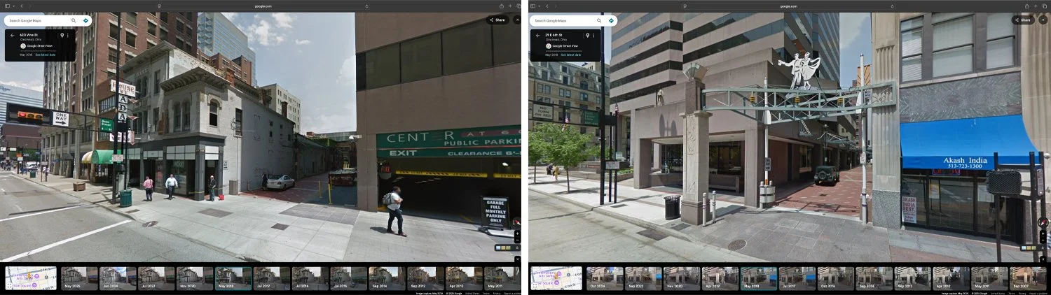 Meanwhile, the east-west running Gano St. connects Walnut St. with Vine St. Although it now only exists within this block, Gano was historically known for its collection of popular restaurants, clubs, and bars.