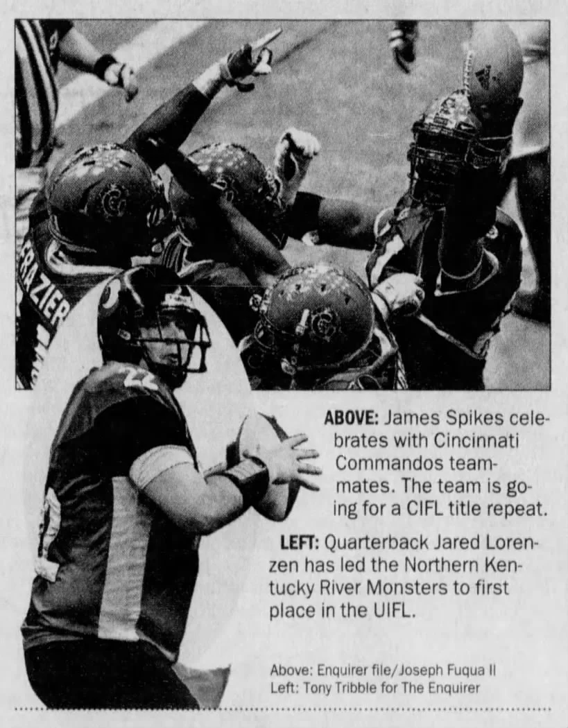 The Northern Kentucky River Monsters debuted as members of the UIFL in 2011 while the cross-river Commandos were chasing their second championship in the CIFL.