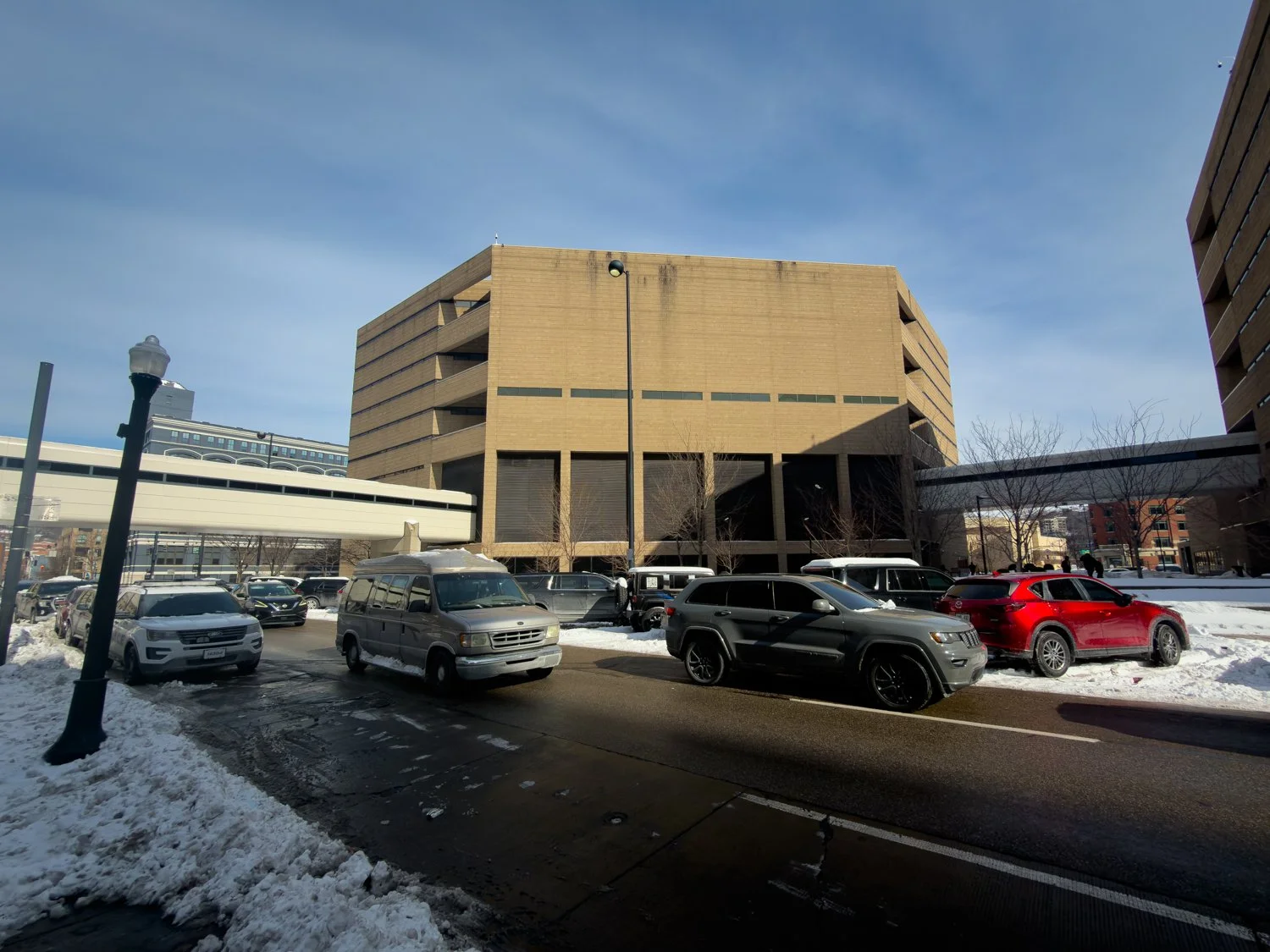 Skywalk as seen above Main St on a frigid day in January 2025.
