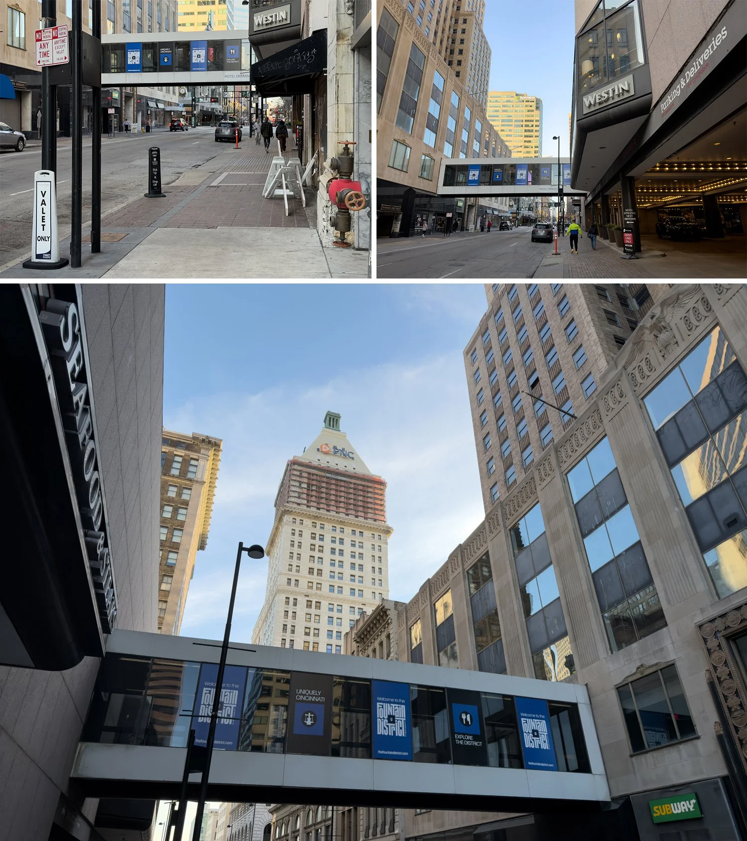 At the same time, a now-isolated Skywalk segment above Vine is technically open to the public, but nominally serves only as hotel access with keycard requirements after certain hours. Given that it’s also connected to the Carew Tower Arcade—a currently liminal space void of activity—it likely sees limited foot traffic.