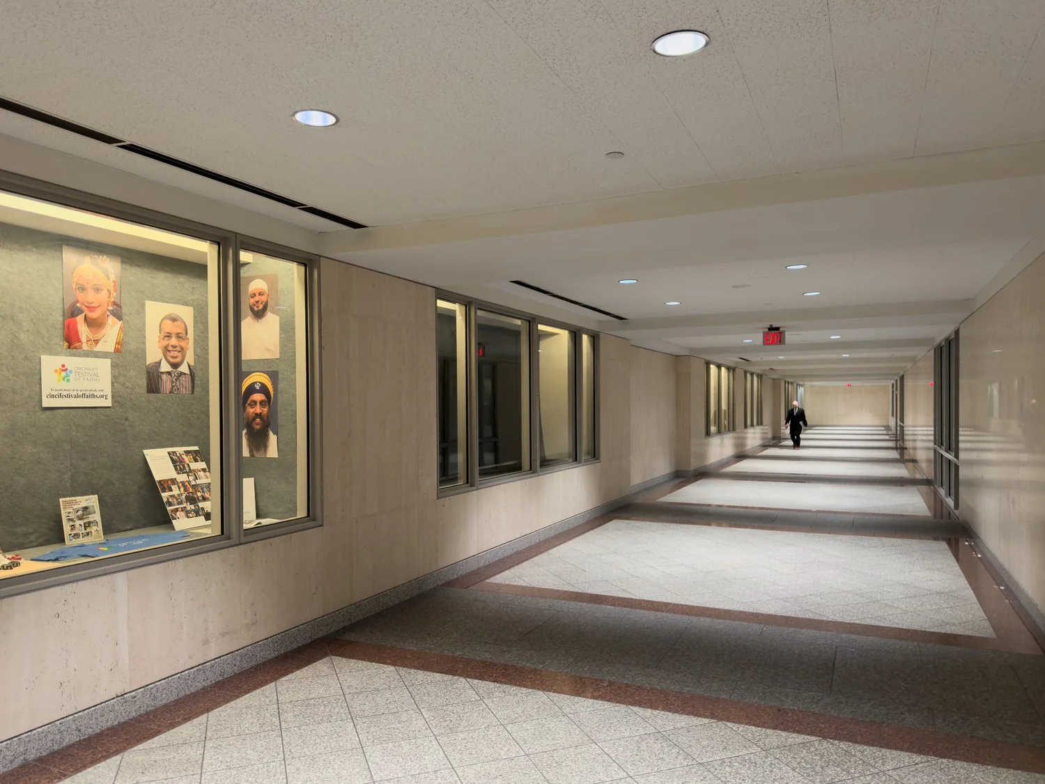 Exiting the First Financial Tower near the bridge to Atrium II.