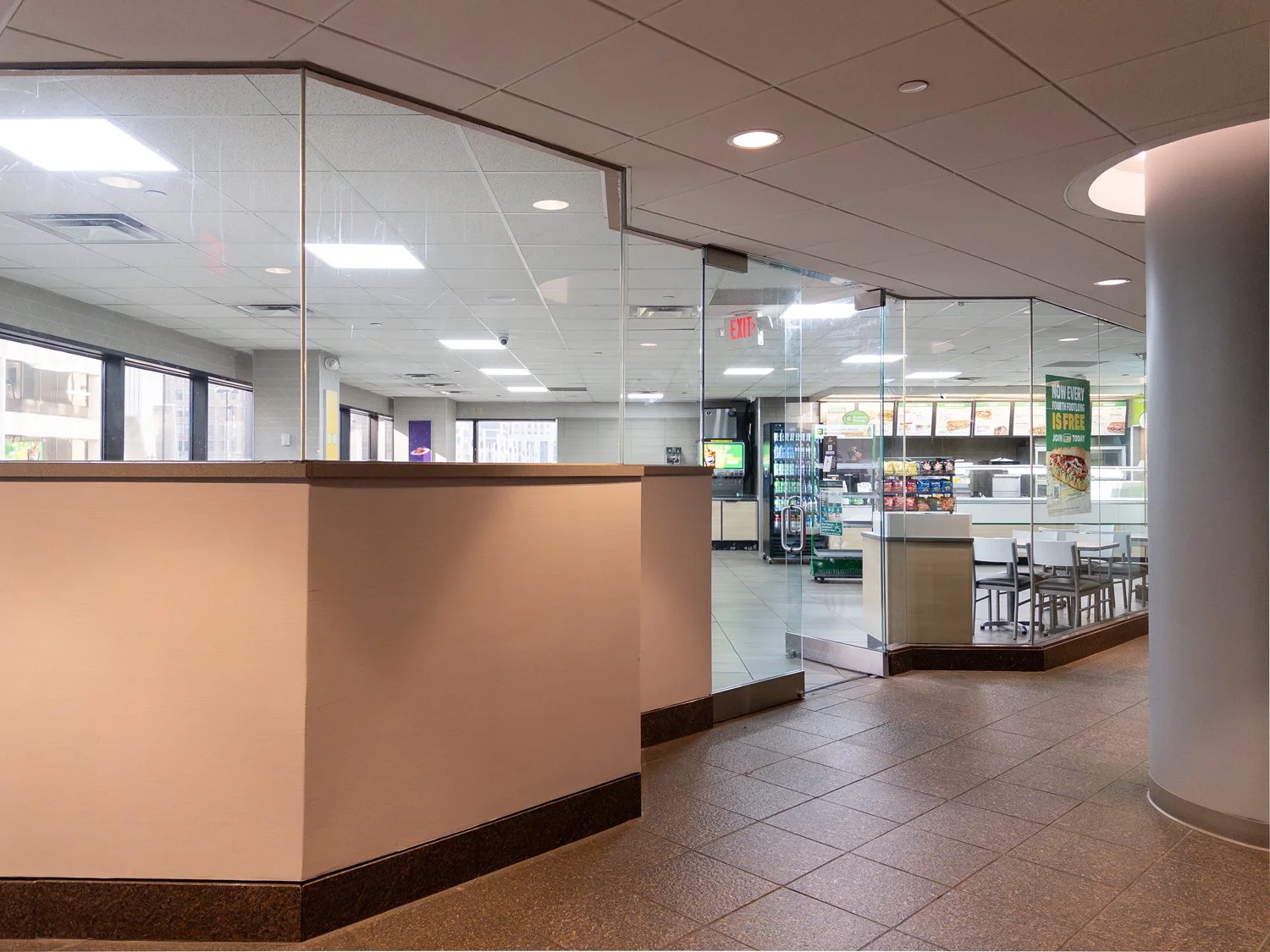 …there’s a selection of local and corporate options (including another Subway) at the “Atrium Food Market.”