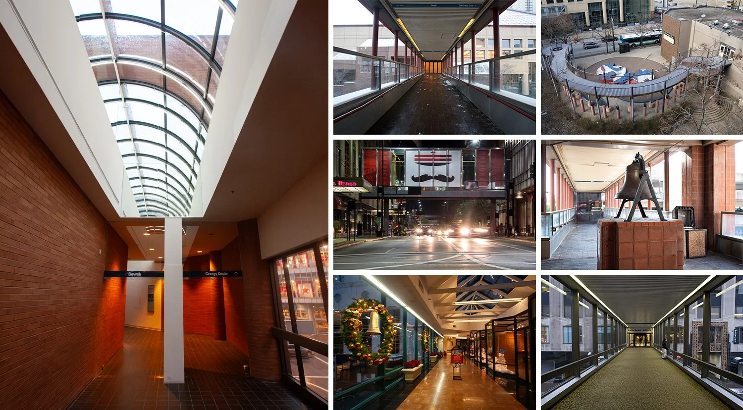Various segments of the Cincinnati Skywalk documented over the years.