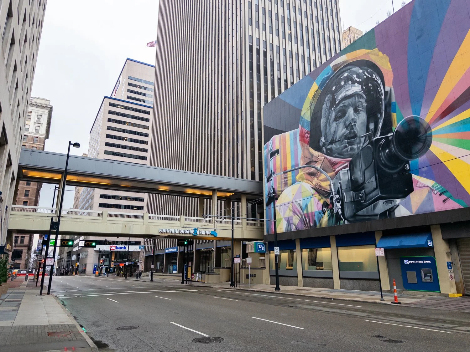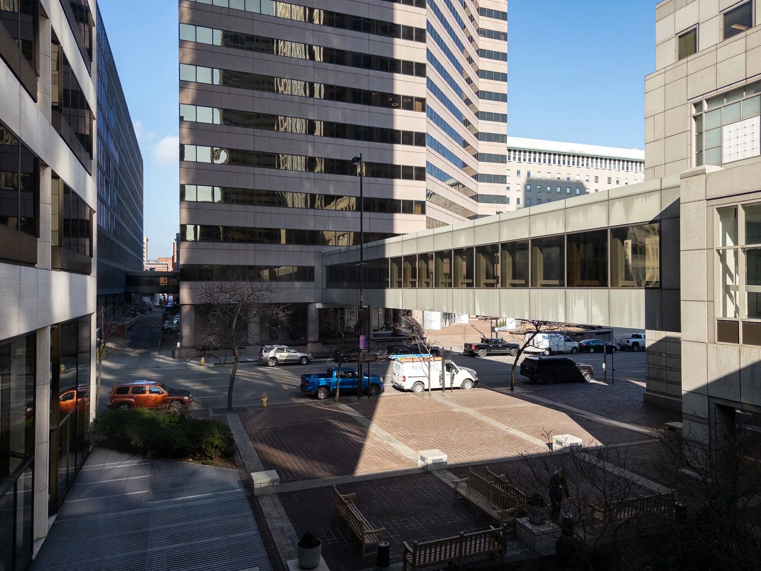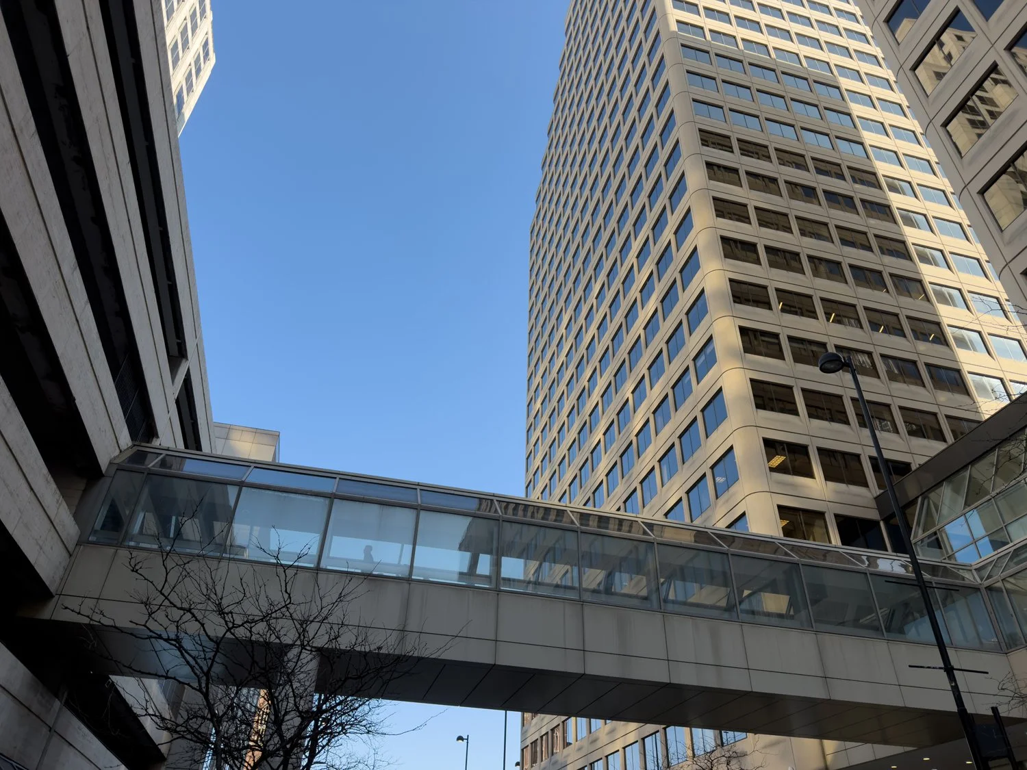 Skywalk bridge above Walnut St connecting AT580 (left) with the Fifth Third Center (right).