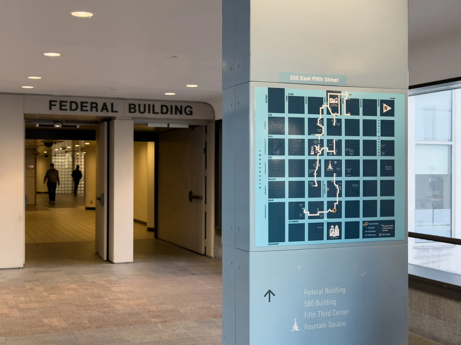 Skywalk signage in the First Financial Tower..