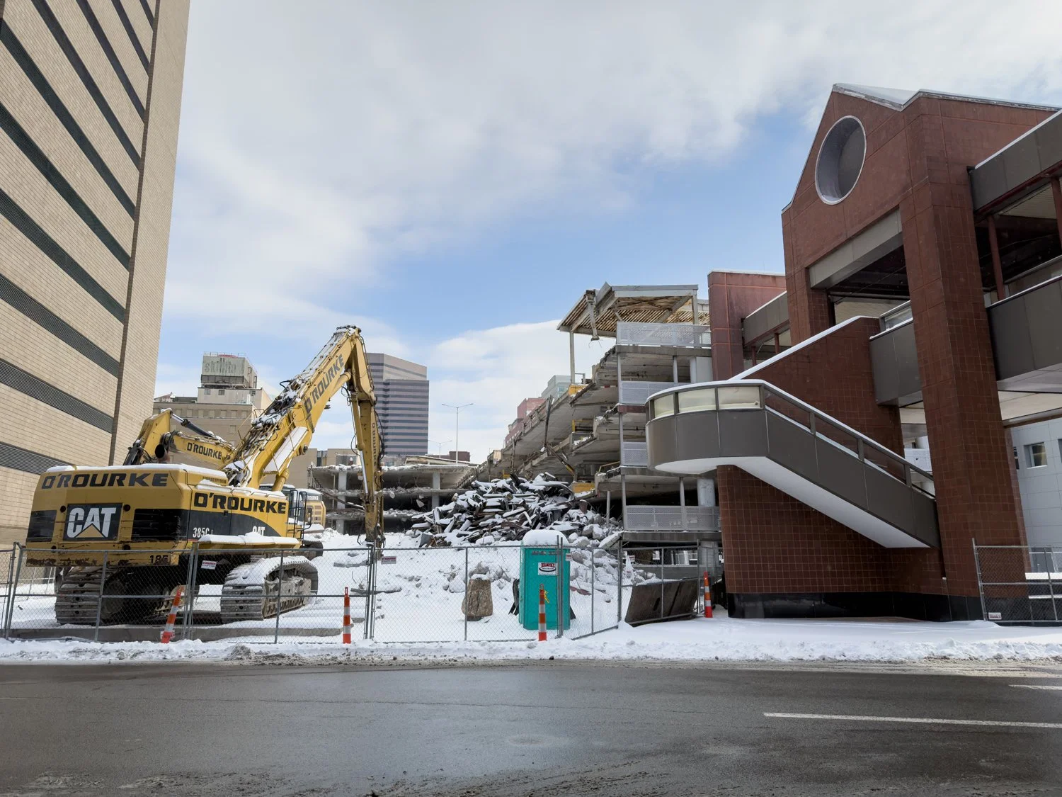 Technically, the enclosed-pedestrian-bridge-that-had-just-recently-been-above-us wasn’t part of the official “Skywalk,” but it had looked the part. And now, its demolition was serving as another reminder of how the once-sprawling network was continuing to disappear.