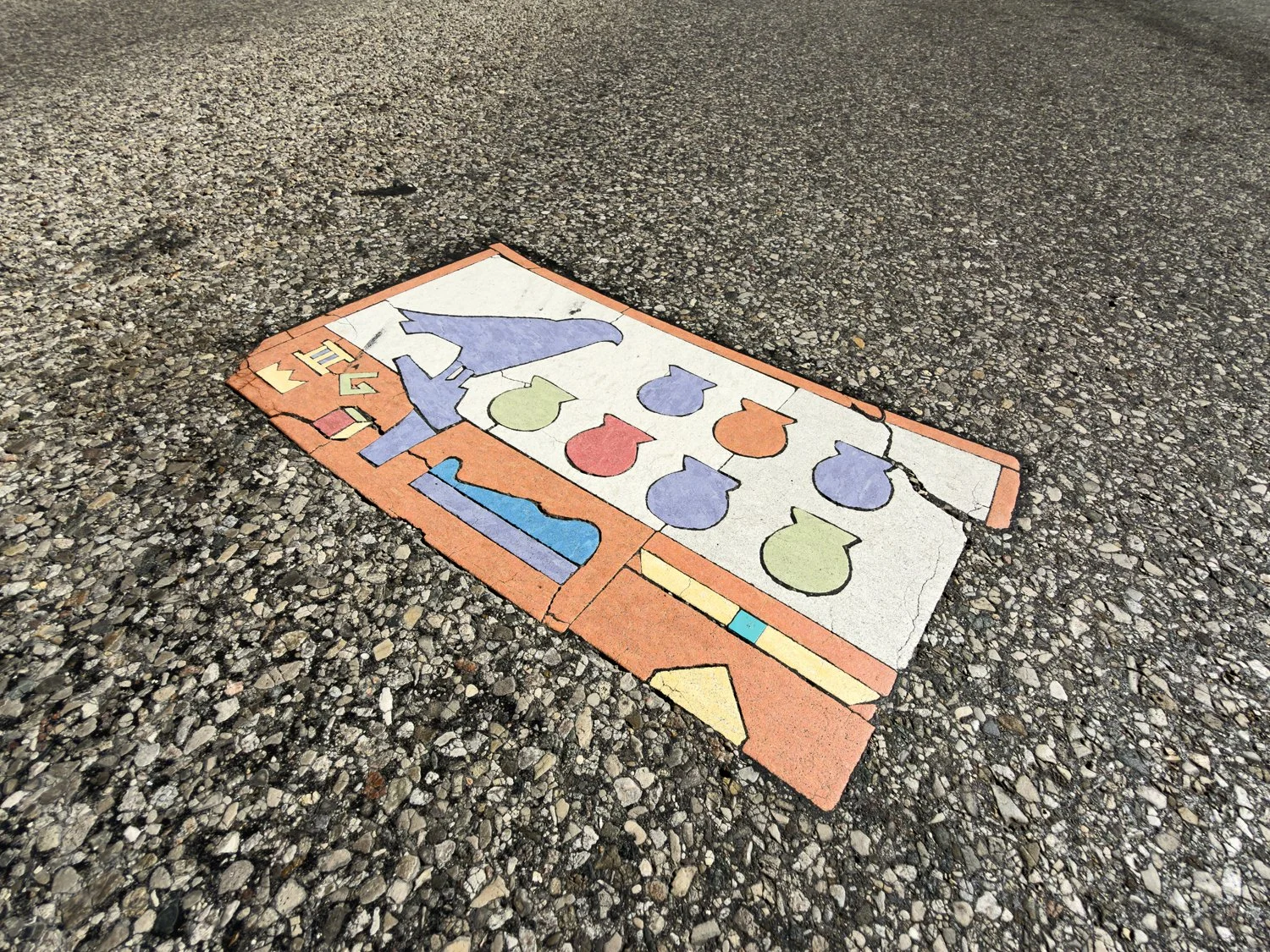 Lammi pointed out a new street tile that seems to have appeared in downtown Cincinnati relatively recently. Quick (internet) research based on the tile’s use of hieroglyphics seems to indicate that what’s being depicted might be some sort of funerary or memorial offering. That’s just a (very) loosely “educated” guess, though.