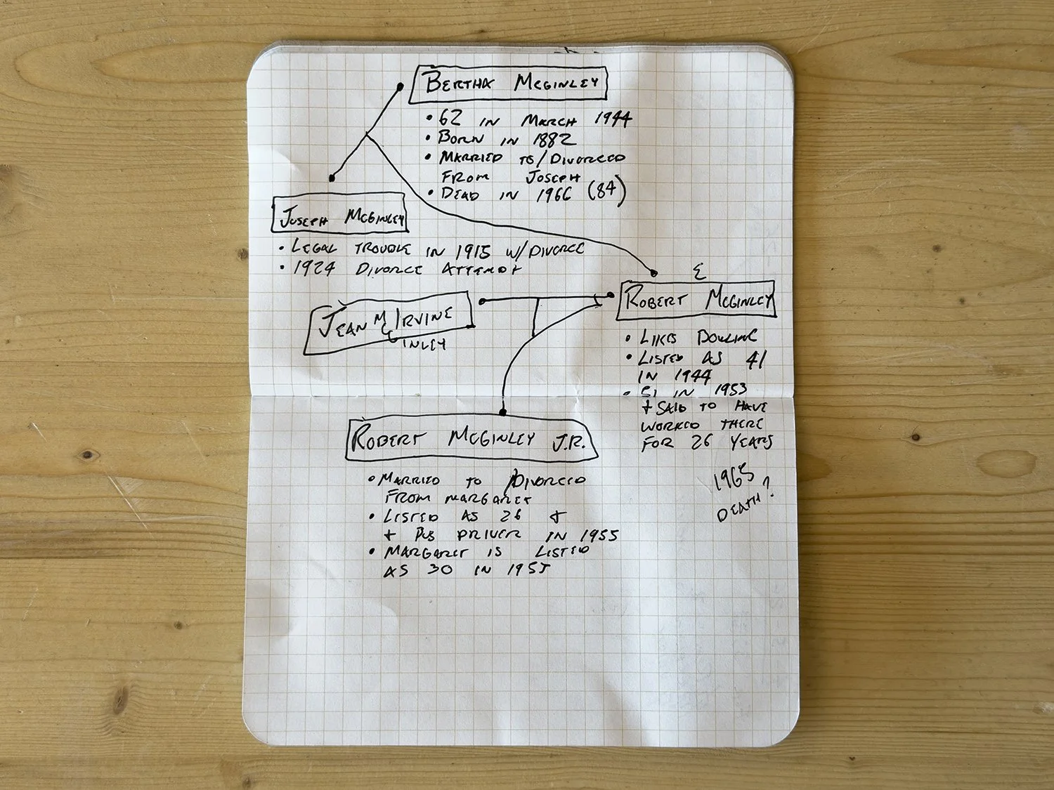Who knew just how many High Life’s had been consumed on the spot where Mr. McGinley once rested his head, let alone how many more would be required to follow this guy’s family tree like a strung-out, red-eyed detective scarfing down Chinese takeout and staring at a murder board.