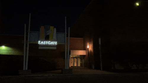 All that to say: a Midwestern suburb in the middle of November can be a dark place for two men in their mid-30s. Quite literally, not just nostalgically or metaphorically. And as we pulled into the expectedly, empty parking lot of the Eastgate Mall—we were treated to a foreboding, Twin Peaksian light show that would’ve made David Lynch proud.